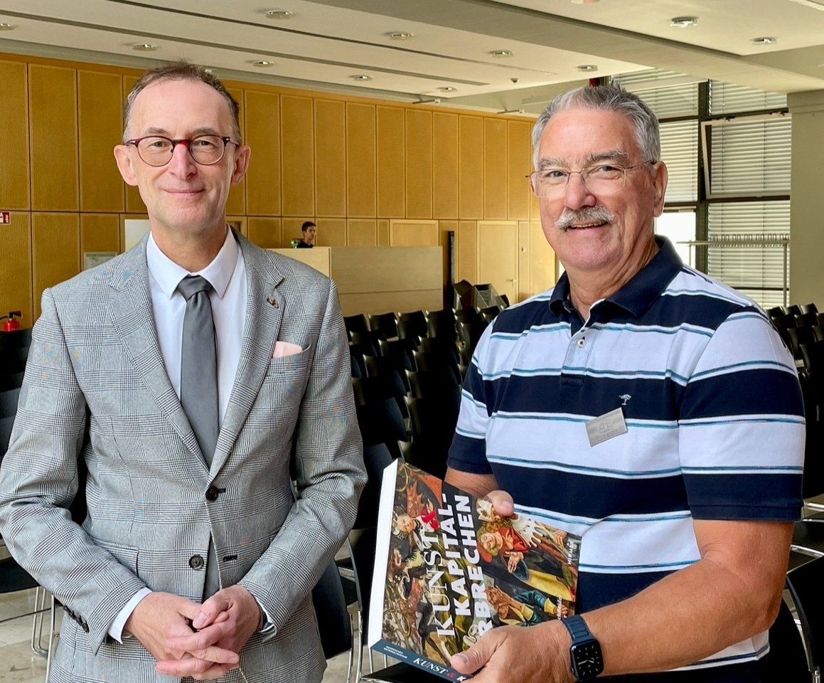 Höhepunkte waren sicherlich die Kunstausstellung im Deutschordensschloss unserer Studiengenossinnen und Studiengenossen Mia Hochrein, Gudrun Emmert, Kathrin Hubl, Rainer Nepita und Chris Hodgson, ein sehr kurzweiliger Begrüßungsabend, der Festvortrag von Dr. Frank Matthias Kammel zum Thema Veit Stoß und Tilman Riemenschneider, ein umfangreiches Nachmittagsprogramm, tolle Konzerte von den „Bodygards“ (Schlosshof) und dem „SwingPack“ (Markplatz) sowie unzählige Stunden des Wiedersehens, der Begegnung und der Freude. Das hat Euch allen, die ihr dabei sein konntet, hoffentlich gefallen.